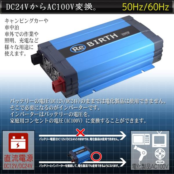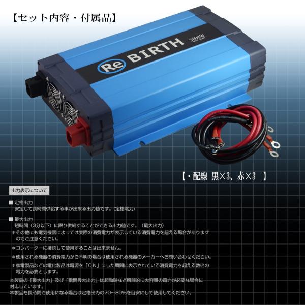 | 製品名: | インバーター 正弦波 DC 24V AC 100V 変換 定格 3000W 瞬間 6000W 50Hz 60Hz 切替 車中泊 バッテリー 電源 |