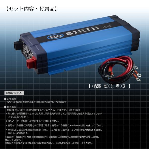 | 製品名: | インバーター 正弦波 DC 24V AC 100V 変換 定格 4000W 瞬間 8000W 50Hz 60Hz 切替 車中泊 バッテリー 電源 |