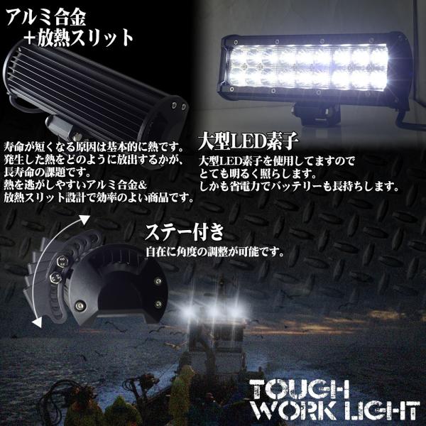 船用、漁業用、農業機械、建設機械、工程機械、トラック、自動車がバックライト等の作業に、災害時の備えに、交通整理に、工事現場に様々な場面で活躍できます! 防水等級はIP67!車両搭載や屋外使用も可能!! ◎主な用途 ・トラックの荷台用の照明 ・フォークリフトのライト ・除雪車のライト ・海苔漁の常夜灯 ・漁業の常夜灯 ・夜釣りの照明、集魚ライト ・キャンプなどでは車などのバッテリーに繋いで使用可能 【商品仕様】 LEDパワー:54W 動作電圧:10V~30V LED発光色:昼光色(6000K) 防水等級:IP67 LED:3w×18pcs 54Wの高出力LED 照射角:広角タイプ(光角度:60度) 長寿命(約):30000時間 本体材質:アルミ合金 レンズ材質:PMMA 配線の長さ(約):340mm サイズ(約):230×55×65mm(取付金具除く) 【商品内容】 本体 × 1 取付キット一式(ネジなど) × 1式 (LED作業灯 LEDワークライト LED 作業灯 ワークライト 投光器 屋外 工事 作業 夜間 農業機械 建設機械 災害 キャンプ 夜釣り 船舶 除雪車 漁業 集魚灯 看板灯 ライト トラック ユニック車 フォークリフト 送料無料)